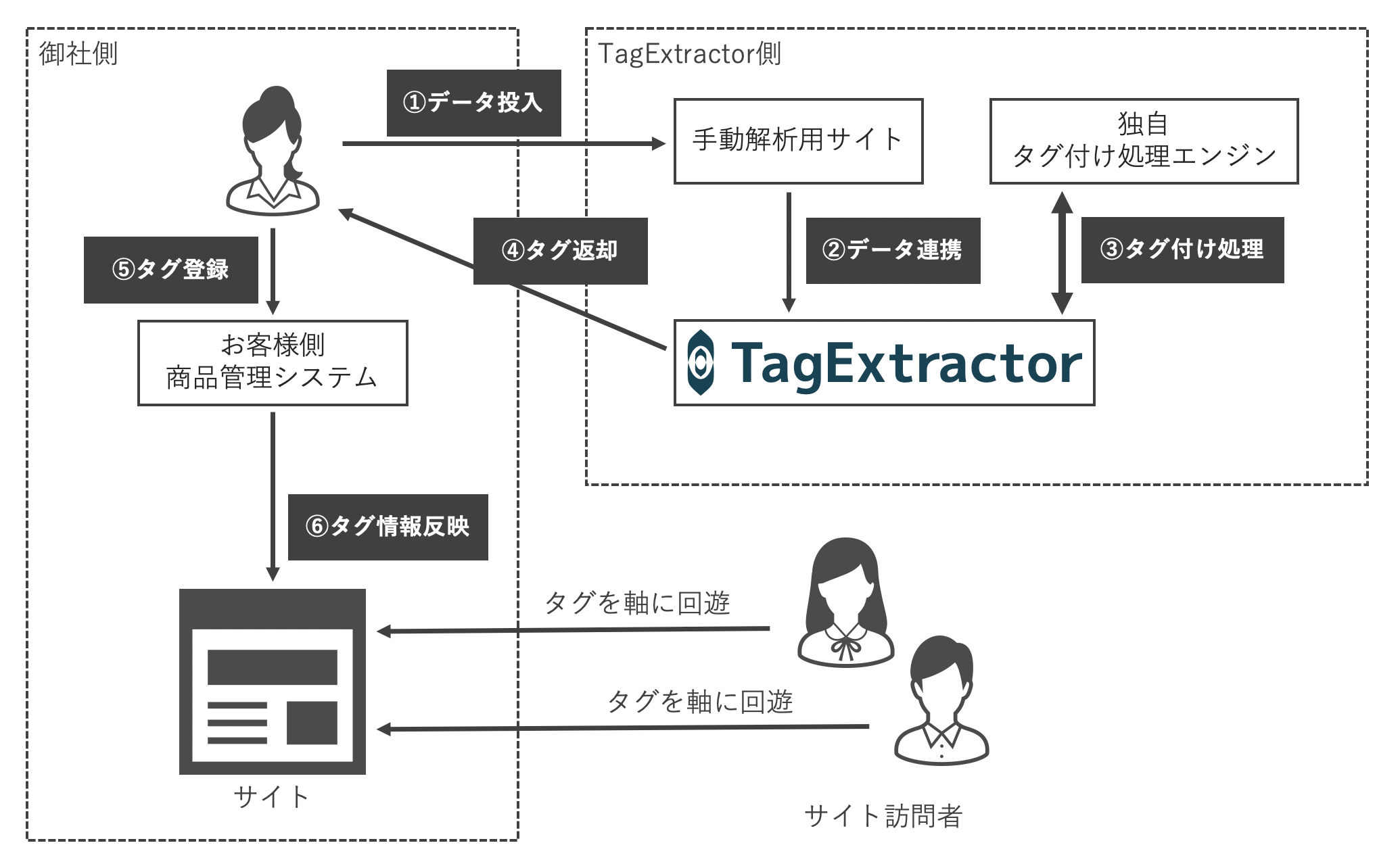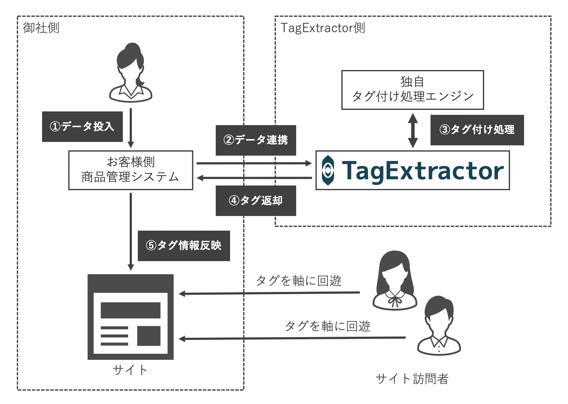 ①はTagExtractor側にある商品情報を入力する専用サイト。